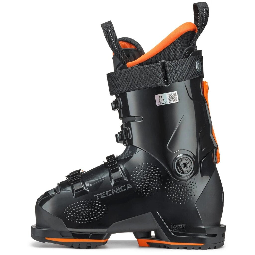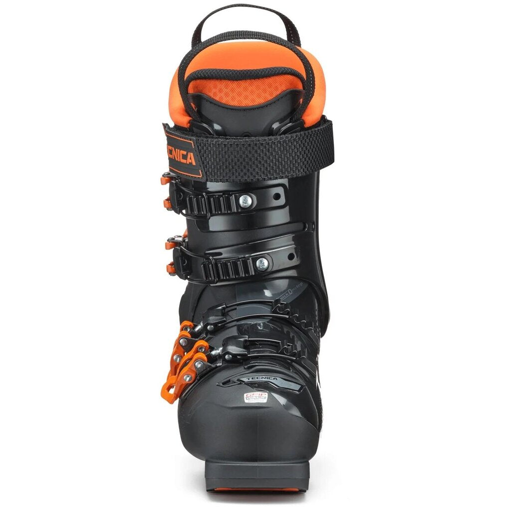 Ski boot flex ranges from about 40 (for small children) up to 130 for general consumer boots. An 85 flex is generally a medium stiffness for intermediate women skiers, and a 100 flex is a generally a medium stiffness for intermediate men. Some race boots, categorized as “world cup flex” are measured at 140-170 flex and are built for only the most aggressive skiers. Ultimately, the flex index is not a perfectly succinct measurement across boot brands; it is always best to try a boot on before buying to confirm the flex works well for you.