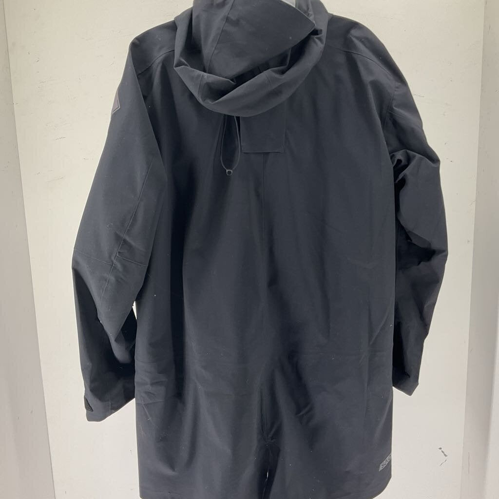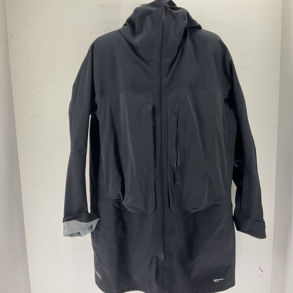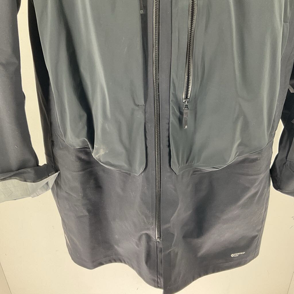 This Salomon jacket has a nice beefy hardshell build and will help keep moisture out. The jacket features a layered membrane construction and taped seams, this keeps moisture out and provides breathability. The jackets long construction helps with defense from the weather and snow, making it a great ski shell!