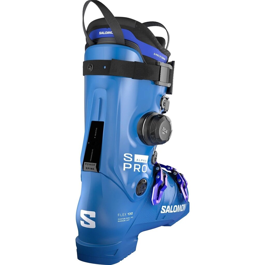 The 2027 Salomon S/Pro Alpha C 130 BOA is built for skiers who demand uncompromising precision and power on every run. ExoDrive construction and a Powerlink lower pivot deliver exceptional energy transfer, while the 98mm fit locks in the heel and the cuff-mounted BOA system fine-tunes comfort with micro-adjustable control. Paired with the redesigned S/Pro CF Expert liner, this boot blends race-level response with a more forgiving, confidence-inspiring feel for charging all-mountain days.