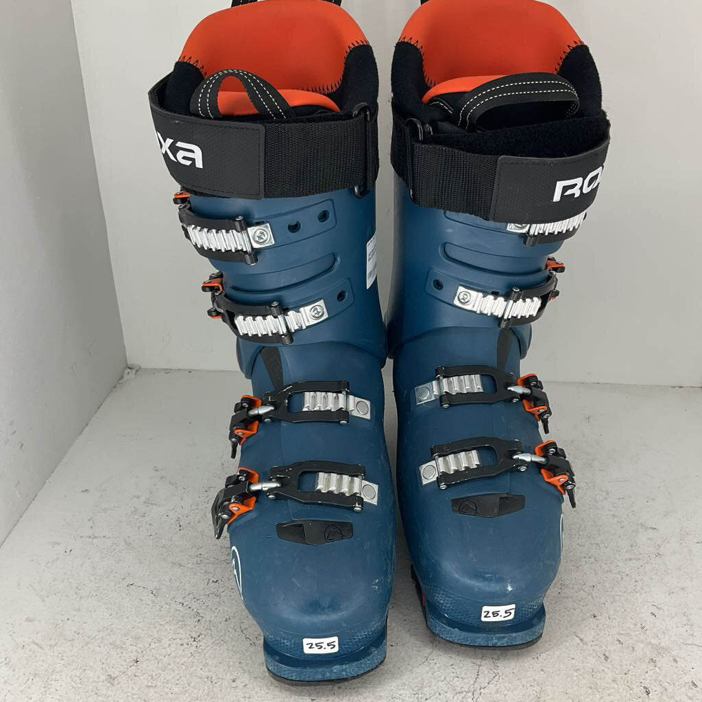 Ski boot flex ranges from about 40 (for small children) up to 130 for general consumer boots. An 85 flex is generally a medium stiffness for intermediate women skiers, and a 100 flex is a generally a medium stiffness for intermediate men. Some race boots, categorized as “world cup flex” are measured at 140-170 flex and are built for only the most aggressive skiers. Ultimately, the flex index is not a perfectly succinct measurement across boot brands; it is always best to try a boot on before buying to confirm the flex works well for you.