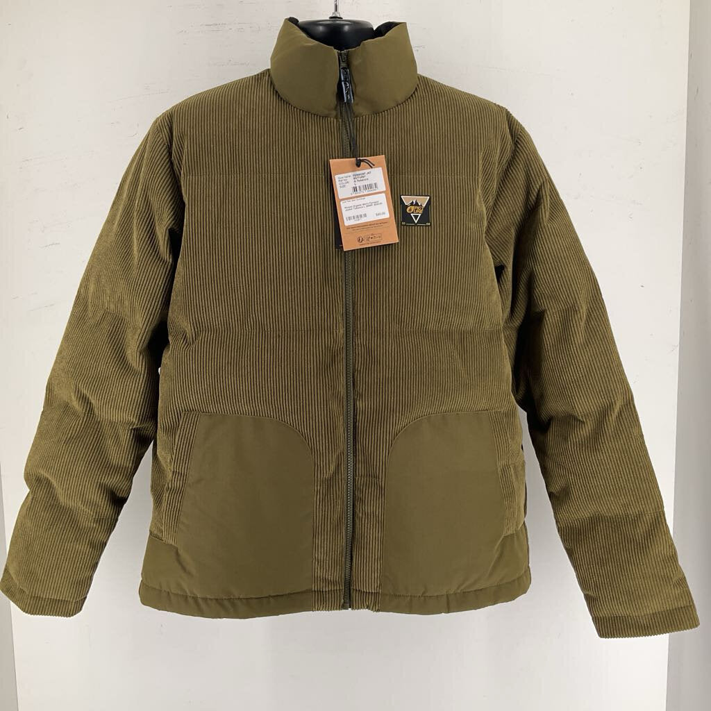 The Picture Organic Men's Fermont Jacket combines retro corduroy style with modern sustainability, featuring a quilted construction of 100% organic cotton and recycled synthetic insulation for optimal warmth. Equipped with a high collar, YKK® Vislon front zipper, and multiple pockets, this robust puffer is your go-to companion for chilly urban commutes and crisp mountain escapes.