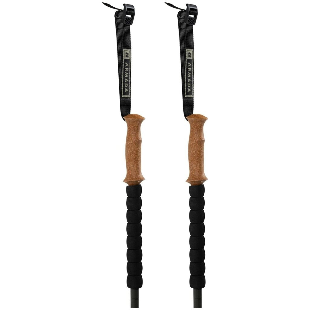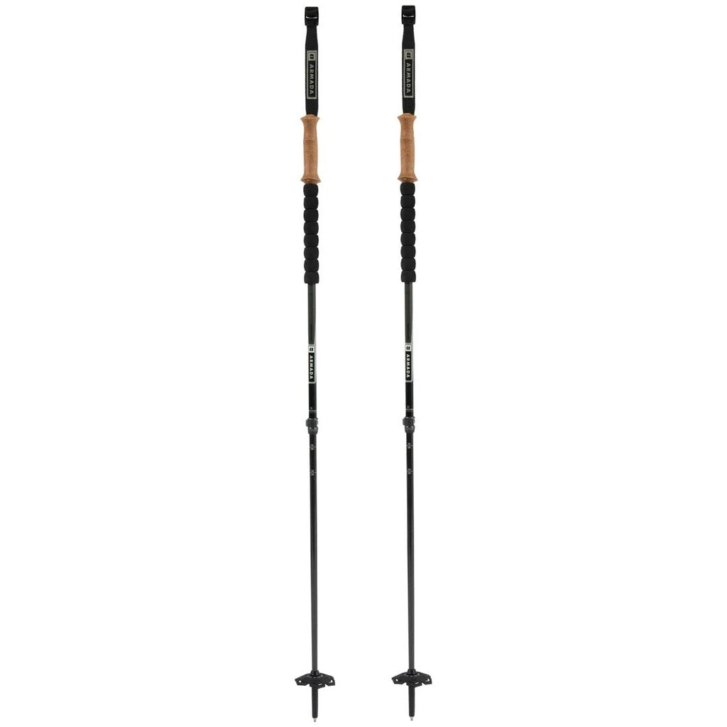 The Armada Carbon Adjustable Ski Poles blend a 7075 aluminum upper with a carbon fiber lower to deliver a lightweight, expedition-ready build that stands up to serious backcountry use. An extended lower tour grip makes it easy to choke up on traverses, keeping every kickturn smooth and efficient.