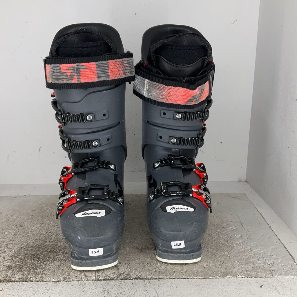 Ski boot flex ranges from about 40 (for small children) up to 130 for general consumer boots. An 85 flex is generally a medium stiffness for intermediate women skiers, and a 100 flex is a generally a medium stiffness for intermediate men. Some race boots, categorized as “world cup flex” are measured at 140-170 flex and are built for only the most aggressive skiers. Ultimately, the flex index is not a perfectly succinct measurement across boot brands; it is always best to try a boot on before buying to confirm the flex works well for you.