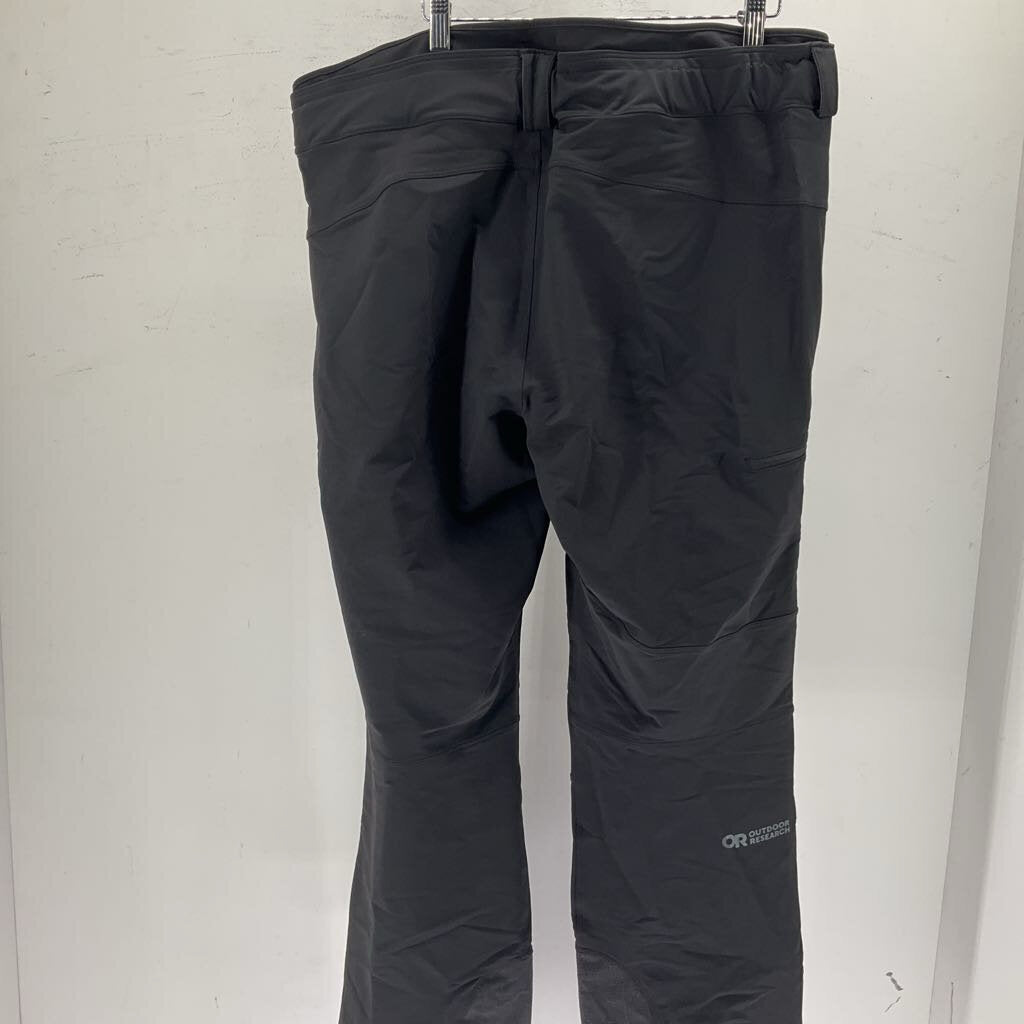 The Outdoor Research Men's Soft Shell Pants are a rugged, breathable black soft-shell pant built for outdoor adventures, offering water- and wind-resistance, 4-way stretch mobility, and durable abrasion-resistant fabric for hiking, skiing, or alpine routes.