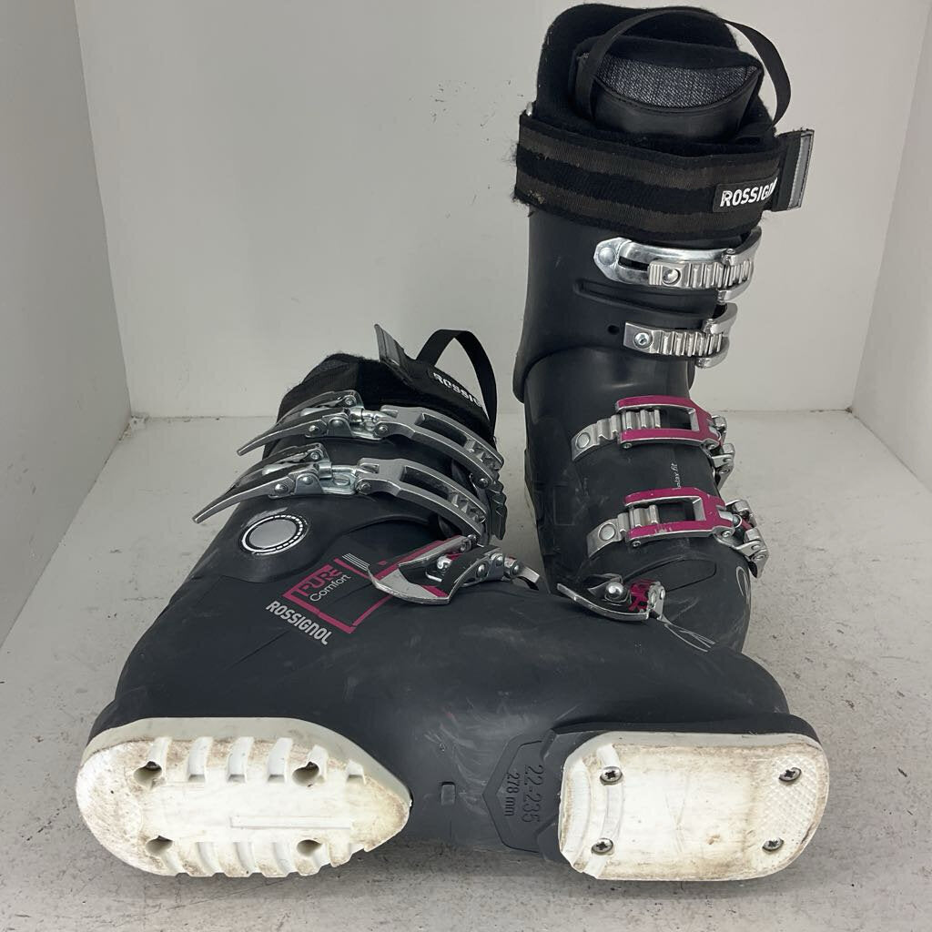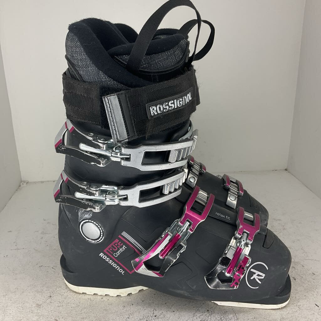 The Rossignol Pure Comfort R is a ski boot produced to provide an accommodating and overly comfortable fit for a lady shredder. The boots 60 flex is perfect for laying turns on the hill while the wide 104mm last and comfortable liner makes for a great fit. If you are looking for the perfect package to get out there and ski in, the Comfort Pure is perfect for you! **The boot sold may not necessarily be the product pictured, but will be in similar condition**