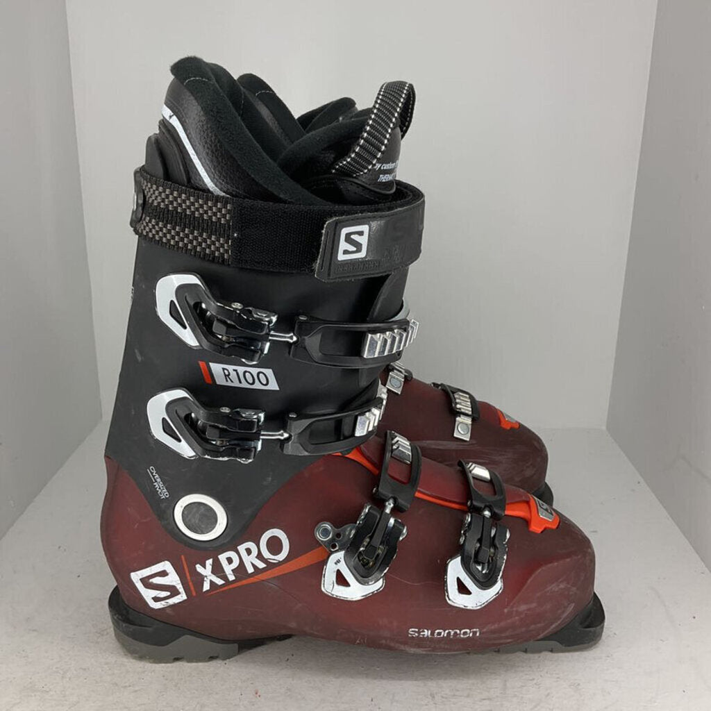 Chaussures de ski Salomon XPro R100 pour homme. Le mélange parfait de confort et de performance dans une chaussure de niveau intermédiaire à avancé avec une forme large et une coque entièrement thermoformable, vous ne pouvez pas vous tromper avec cette chaussure très appréciée ! Occasion - Bon état. **Veuillez noter que les bottes que vous voyez sur cette photo peuvent ne pas être exactement les mêmes que celles que vous recevrez. Toutes ces bottes sont dans un état similaire et leur prix est en conséquence**
