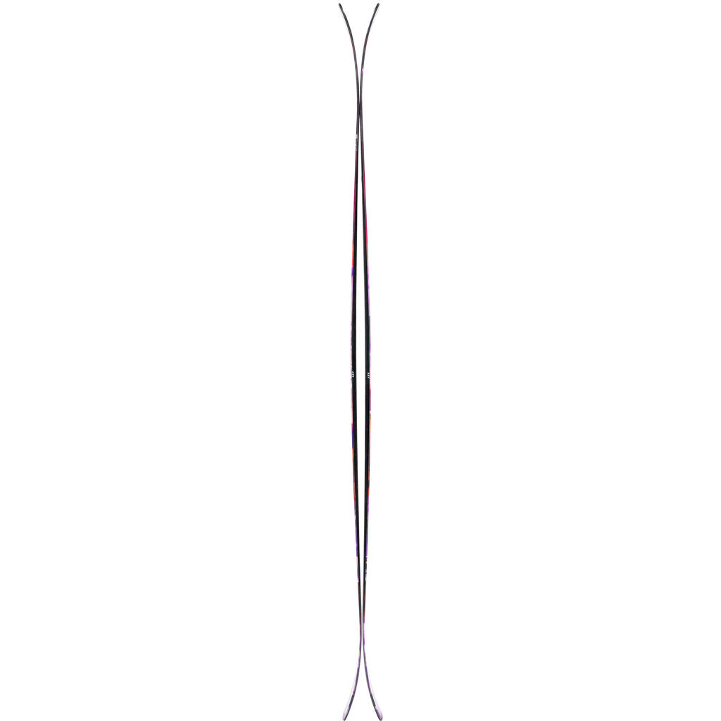 Flat - The traditional flat tail design has been used for decades in ski construction and provides edge contact through the full length of the tail. These skis are meant to only ski forward.