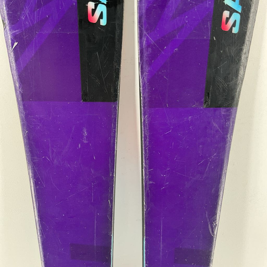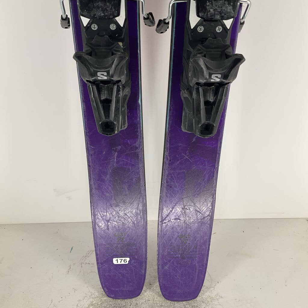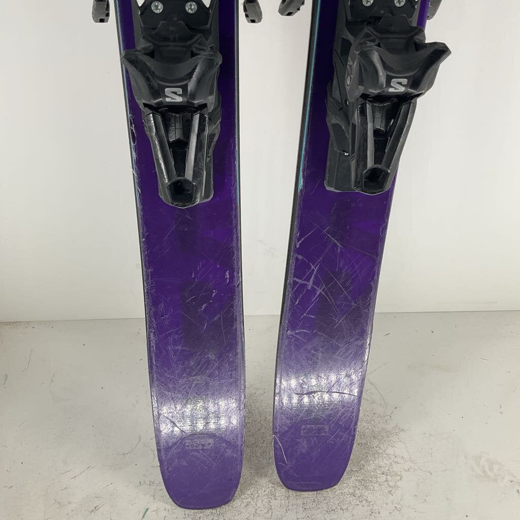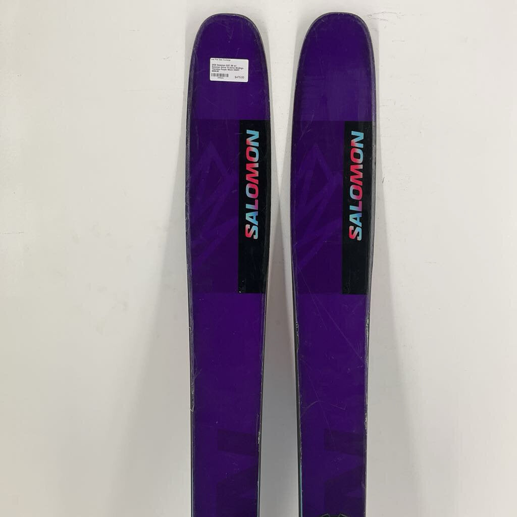 The Salomon QST 98 is the daily driver of your dreams; charging hard on corduroy, popping off side-hits, and navigating trees and steeps beautifully. Mixing power and finesse with Double Sidewalls, Cork Damplifier tips and tails, and C/FX construction, this twin rocker profiled ski is a smooth operator in all conditions. Plus, with a beautiful new purple top sheet, you'll be the best looking shredder on the slopes.