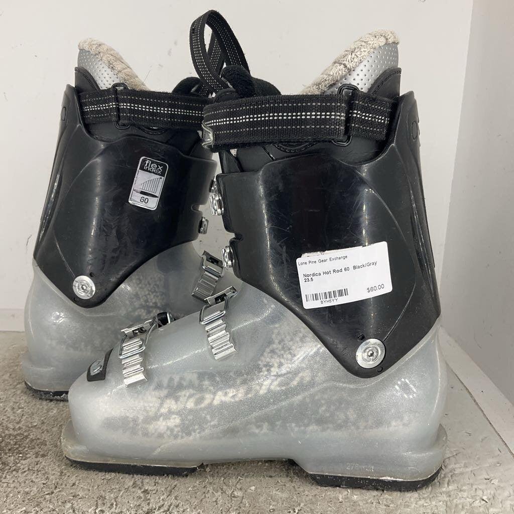 Ski boot flex ranges from about 40 (for small children) up to 130 for general consumer boots. An 85 flex is generally a medium stiffness for intermediate women skiers, and a 100 flex is a generally a medium stiffness for intermediate men. Some race boots, categorized as “world cup flex” are measured at 140-170 flex and are built for only the most aggressive skiers. Ultimately, the flex index is not a perfectly succinct measurement across boot brands; it is always best to try a boot on before buying to confirm the flex works well for you.
