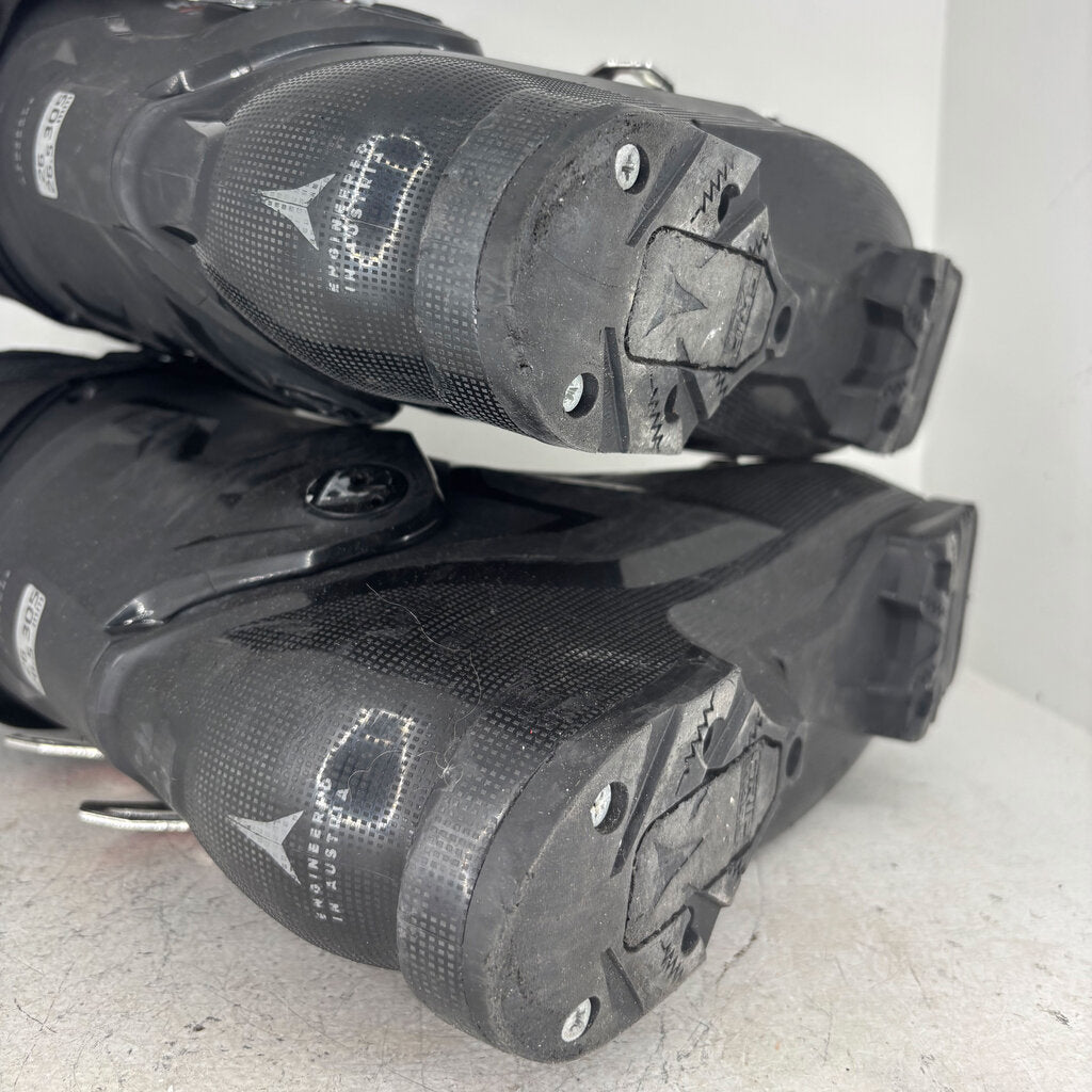 Ski boot flex ranges from about 40 (for small children) up to 130 for general consumer boots. An 85 flex is generally a medium stiffness for intermediate women skiers, and a 100 flex is a generally a medium stiffness for intermediate men. Some race boots, categorized as “world cup flex” are measured at 140-170 flex and are built for only the most aggressive skiers. Ultimately, the flex index is not a perfectly succinct measurement across boot brands; it is always best to try a boot on before buying to confirm the flex works well for you.