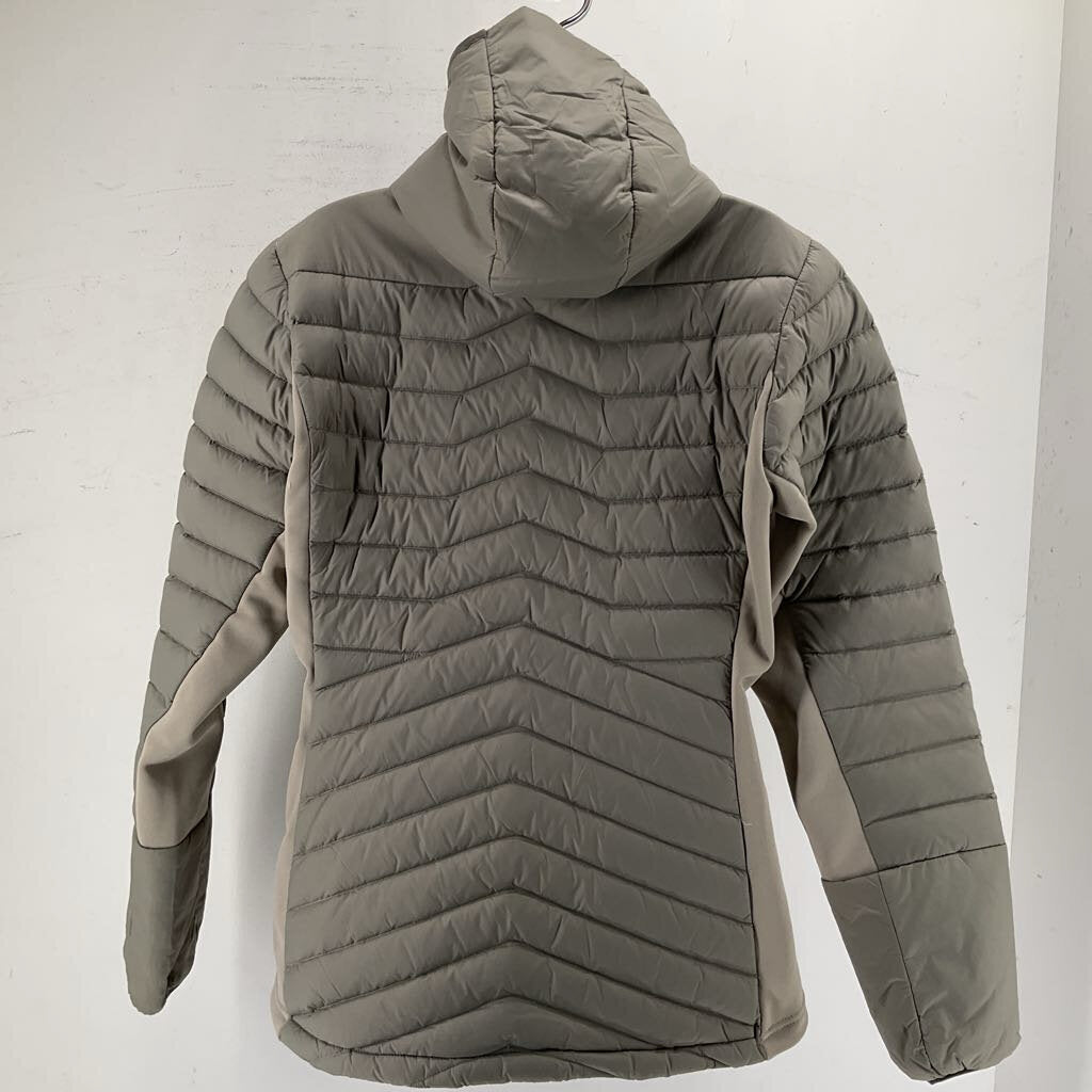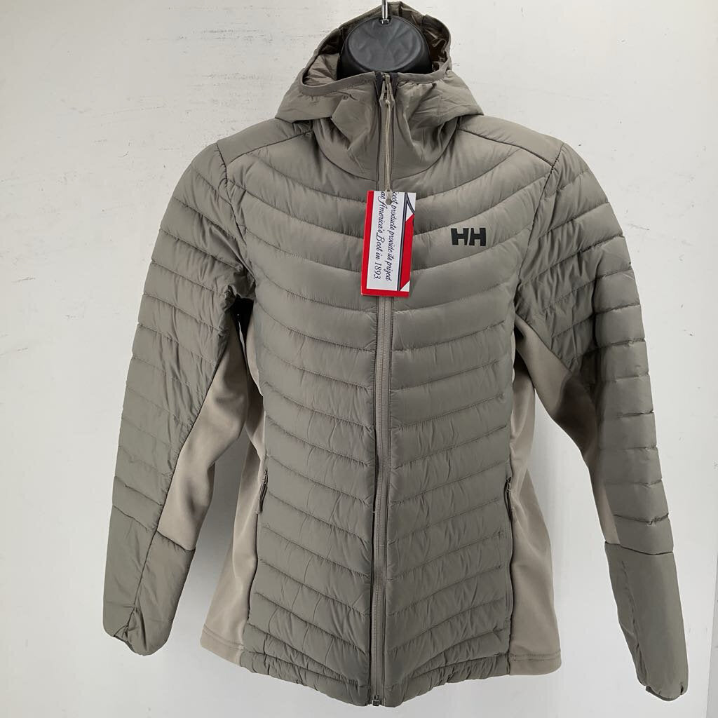 A closet staple, this Helly Hansen Women's Verglas Down Hybrid Hooded Jacket combines the versatility and temperature regulation of a light layer with the warmth of a puffer coat. The fleece side panels are water-resistant and breathable, helping regulate your temperature, while the baffled down will keep you nice and toasty in any weather. *Used- Like New Condition*