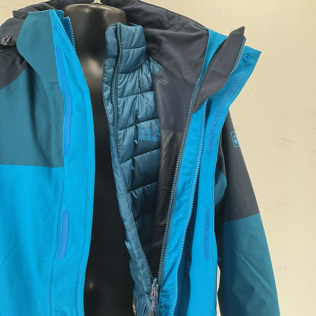 This Jack Wolfskin jacket system provides everything you need for winter adventures or hitting the slopes. The jacket features a puffer inner liner with a lightweight but versatile jacket on the outer, ideal for braving the winter chill. From ski days to walking the dog when its snowing and everything in between this jacket is a true 2 in 1 set up for any winter athlete.