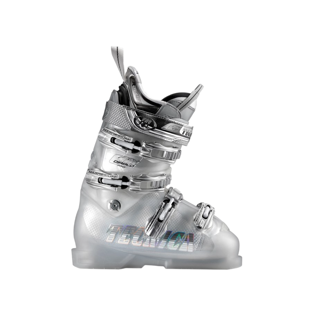 SaleA powerful old school boot that combines world cup race design with a more all mountain build, the Tecnica Attiva Diablo Pro is a stiff model made to charge hard. The boots 100 flex is a nice stiffer flex for a hard charging lady ripper while a comfy liner helps with fit, especially in the lower calf. If you are looking for a great deal on an older model boot that still rips, the Tecnica Attiva Diablo Pro is a great choice. *note, new out of box*